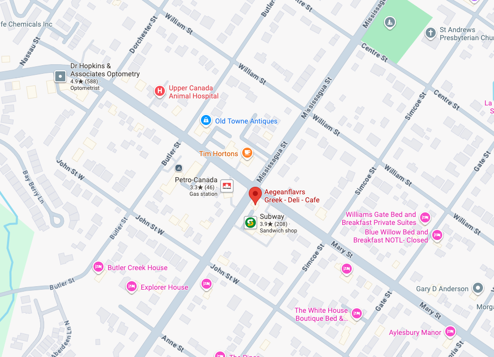 Located in the historic Niagara-on-the-Lake, our Deli & Cafe unite to offer the complete Aegeanflavrs experience. Our guests can savor breakfast pies, mezedes, flavourful meals and a delightful selection of Greek desserts, whether dining in or taking them home.